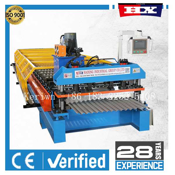 En Tianjin Haixing, somos fabricantes profesionales de máquinas perfiladoras en frío. Nos hemos especializado en este sector durante 22 años. Nuestros equipos incluyen perfiladoras para techos, perfiladoras para pisos, desbobinadoras automáticas, perfiladoras para puertas enrollables, perfiladoras para quillas ligeras, perfiladoras de correas, niveladoras y cortadoras, y otros equipos de construcción relacionados. Nuestras máquinas utilizan componentes eléctricos de marca, materias primas de fábricas de acero de marca, un estricto control de proceso, dos años de garantía y servicios de instalación y capacitación.